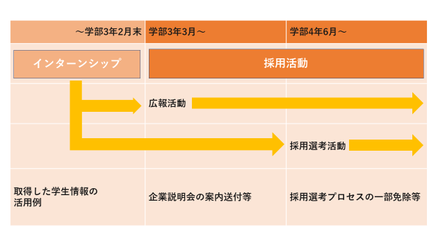 新たに定義されたインターンシップ(先述したタイプ➂④)は、そこで得た学生情報を広報活動・採用選考活動に活用可能となります。