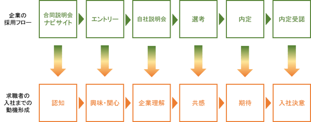 ・認知 → 学内企業説明会、合同説明会、ナビサイトなど