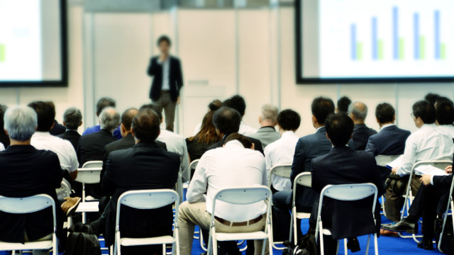 現在実施されているセミナー風景を撮影し、最適な構成に編集した動画をご提供するパターンです。事前にセミナー全体のスケジュールや資料をもとにお打ち合わせを行い、当日の会場へお伺いして複数のカメラで撮影。講師の音声も同時録音。スクリーン投影されるPowerpointのデータと組み合わせて動画を制作します。