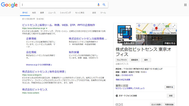 登録された情報は、PCの検索であれば検索結果ページの右側に、スマホでは結果ページの上部に写真や地図とともに表示されます。これらの情報は、Googleマップでの検索にも表示されます。