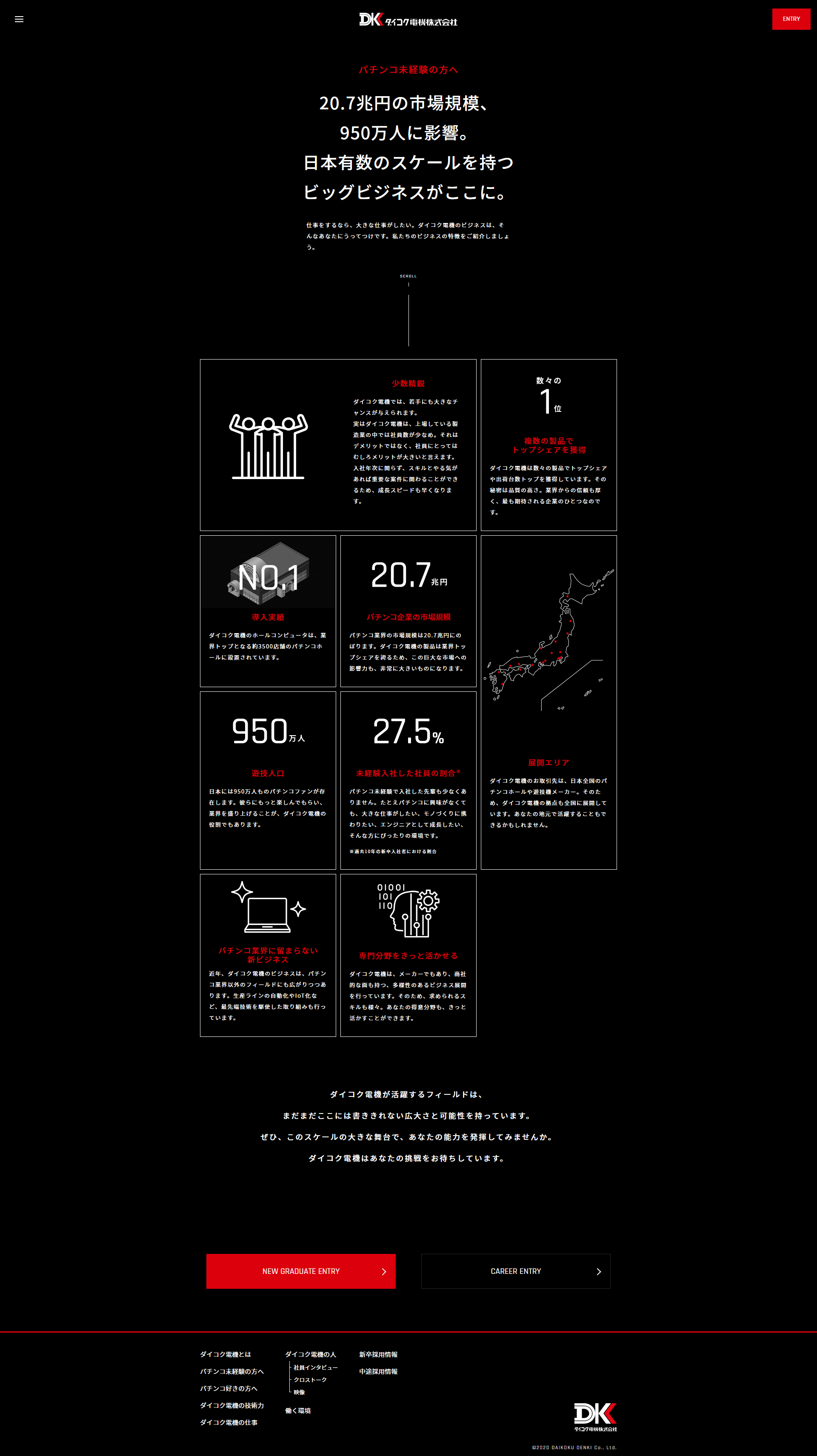 「来たれ、イノベーター」 求める人材像への新しいアプローチとして採用コンセプトを再設定し サイト構成の導線設計を見直すことで、企業風土を改めて分かりやすく伝え 経験の有無に関係なく活躍できる環境がある事を訴求しました。