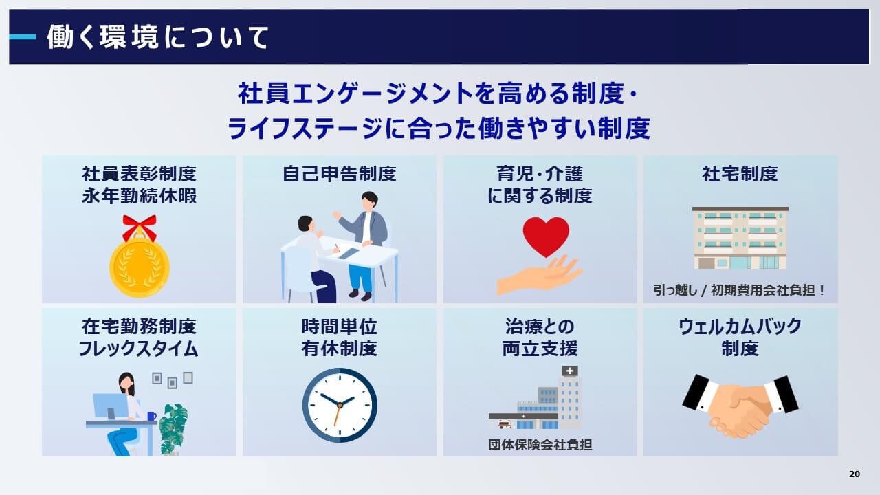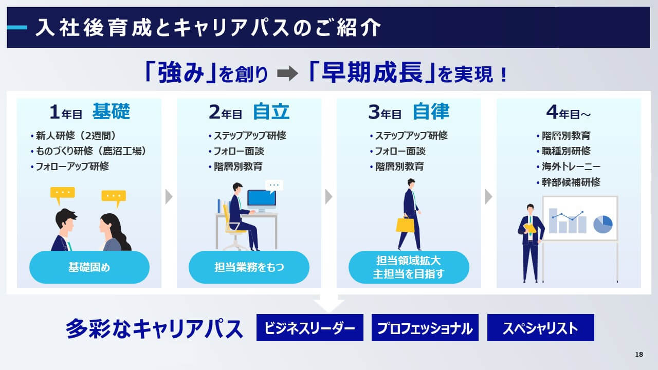 採用ブランディングの一環として、以前に制作した採用サイトのデザインテイストを踏襲して作成しました。 イラストを用いて分かりやすいスライドとなるよう工夫しました。