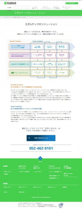エンジニア派遣や受託事業を展開するエボルテック株式会社様のコーポレートサイト。開発実績はクライアント様の都合上、紹介できないものが多いため、社員のスキルや開発フローなどを通して、エボルテック様の“できること”を多角的に紹介したサイトです。また、求職者の視点も意識し、社員インタビューや募集要項を掲載し、応募フォームも設置。採用広報の受け皿としても機能するサイトにしました。