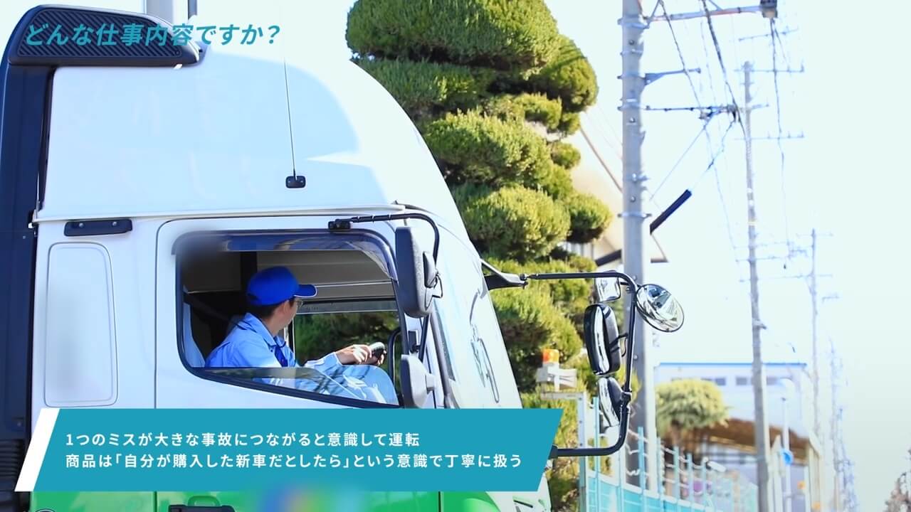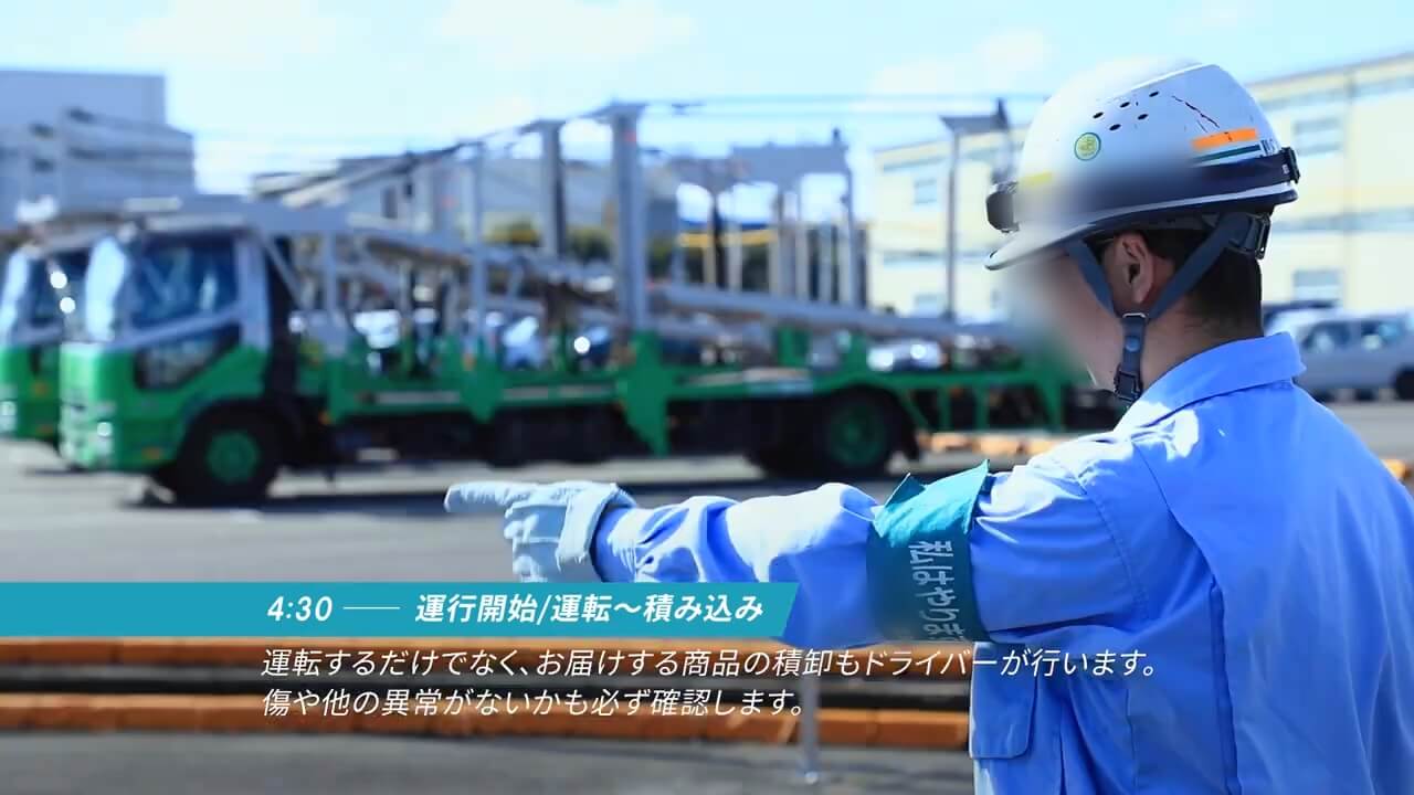 ドライバー職の仕事を紹介するために、採用動画パッケージミテシルで仕事紹介ドキュメント動画の制作を行いました。 コーポレートカラーに合わせたトーンで動画全体をデザインしました。