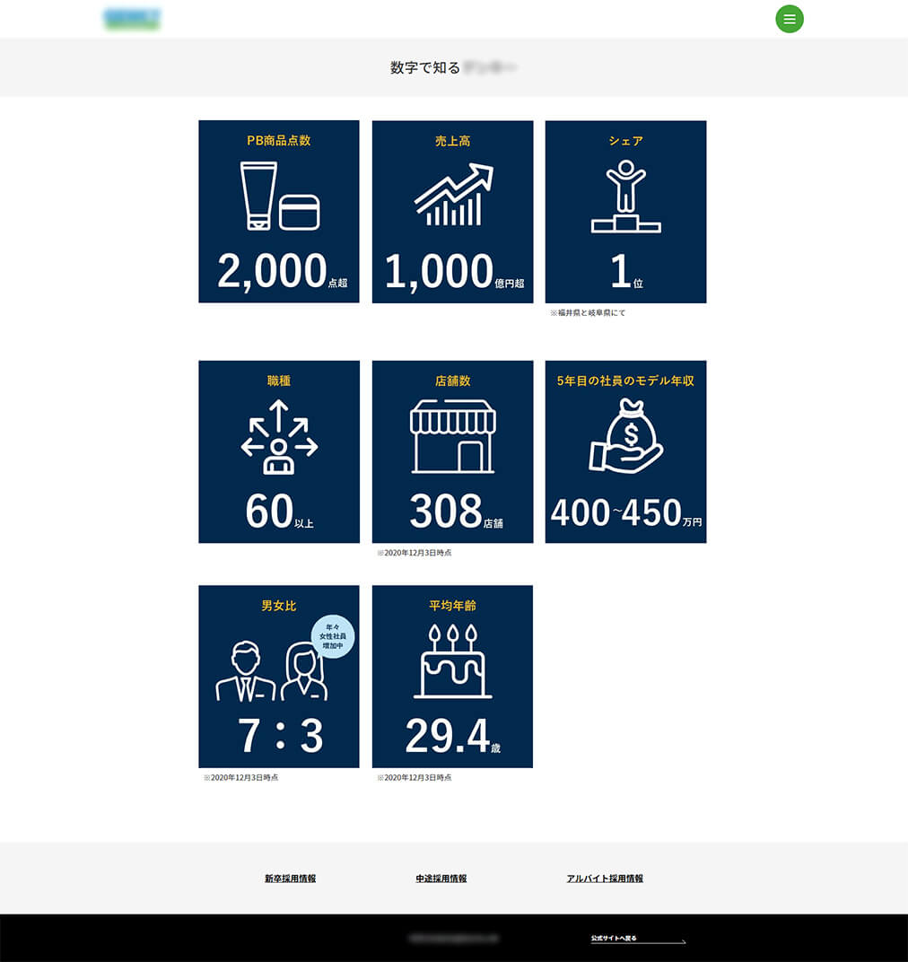 「ドラッグストア」という業態からは想像できない、活躍のフィールドの幅広さが、お客様の魅力でした。TOPページのメインビジュアルでは、お客様ならではのワクワク感を表現しました。このデザインは採用パンフレットと共通のものであり、採用活動におけるブランディングも行っています。